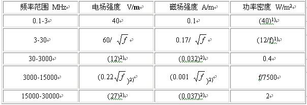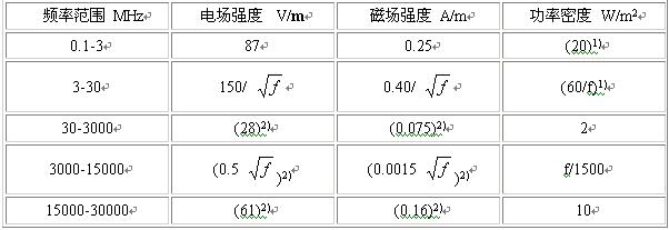 2.2.4 對于脈沖電磁波,除滿足上述要求外,其瞬時峰值不得超過表中1、2所列限值的1000 倍。
